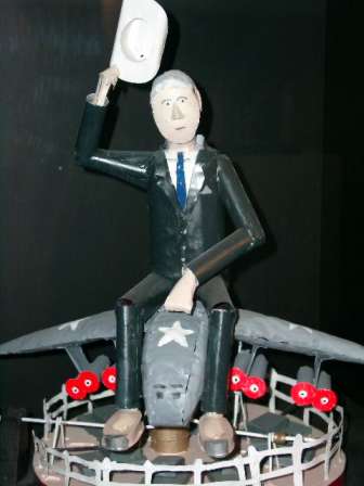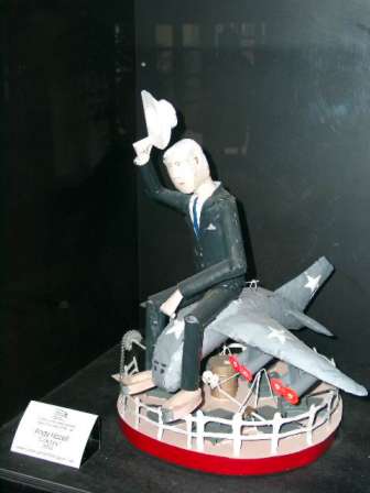 Der "Cowboy" reitet auf einem Düsenjäger, der bockt wie ein Pferd beim Rodeo. Andy Hazell (geb. 1959) lebt als Bildhauer in England und arbeitet vorzugsweise mit dünnem Blech und Draht. |